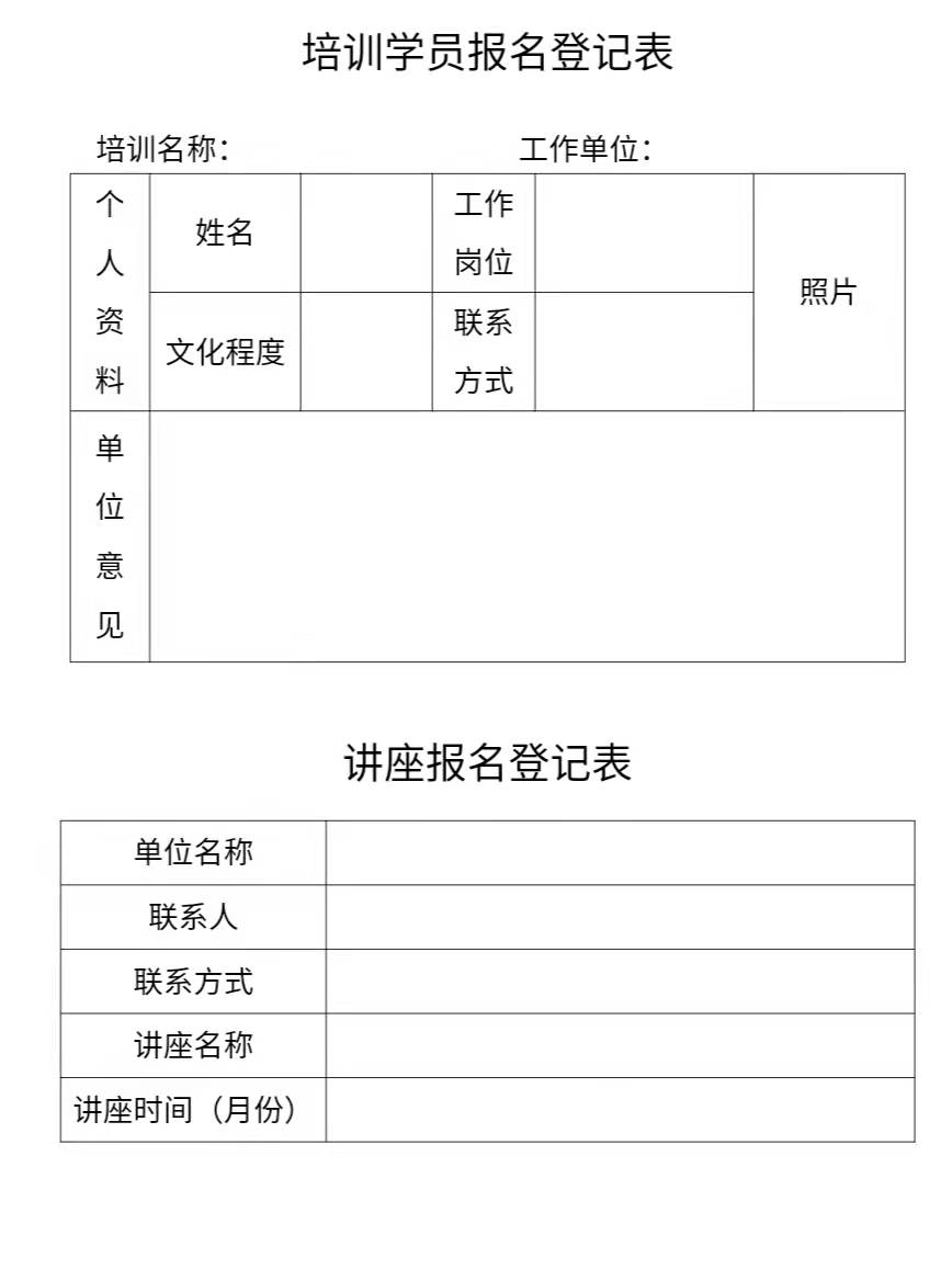 请参加培训和讲座的各学校填写报名表,并将报名表电子版发送至邮箱xinzhiye2019@126.com,纸质报名表加盖学校公章后首次上课时提交。